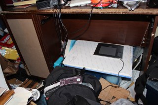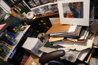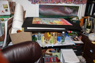 Yes- it is that crammed full of paintings, sketchbooks and other odds and ends- my chair is in the middle of that ocean as a loan island I can swivel around on.
