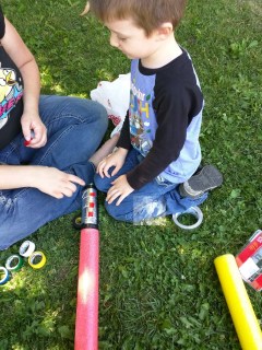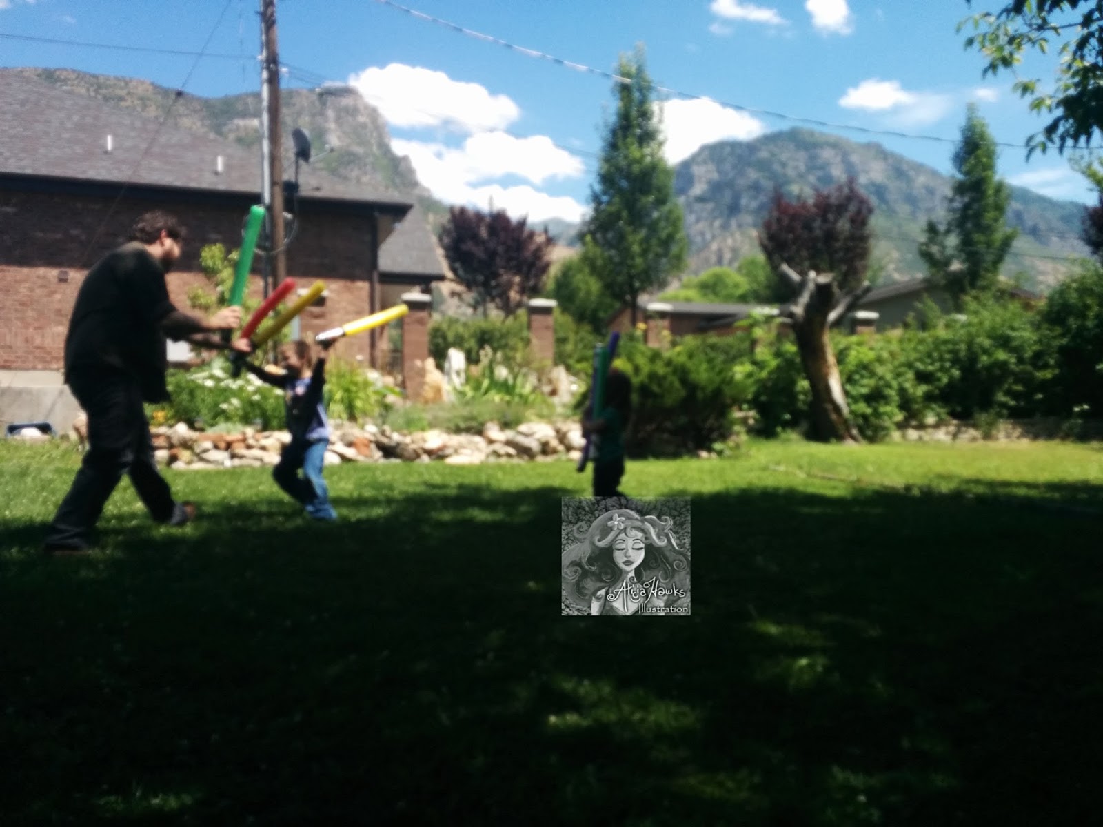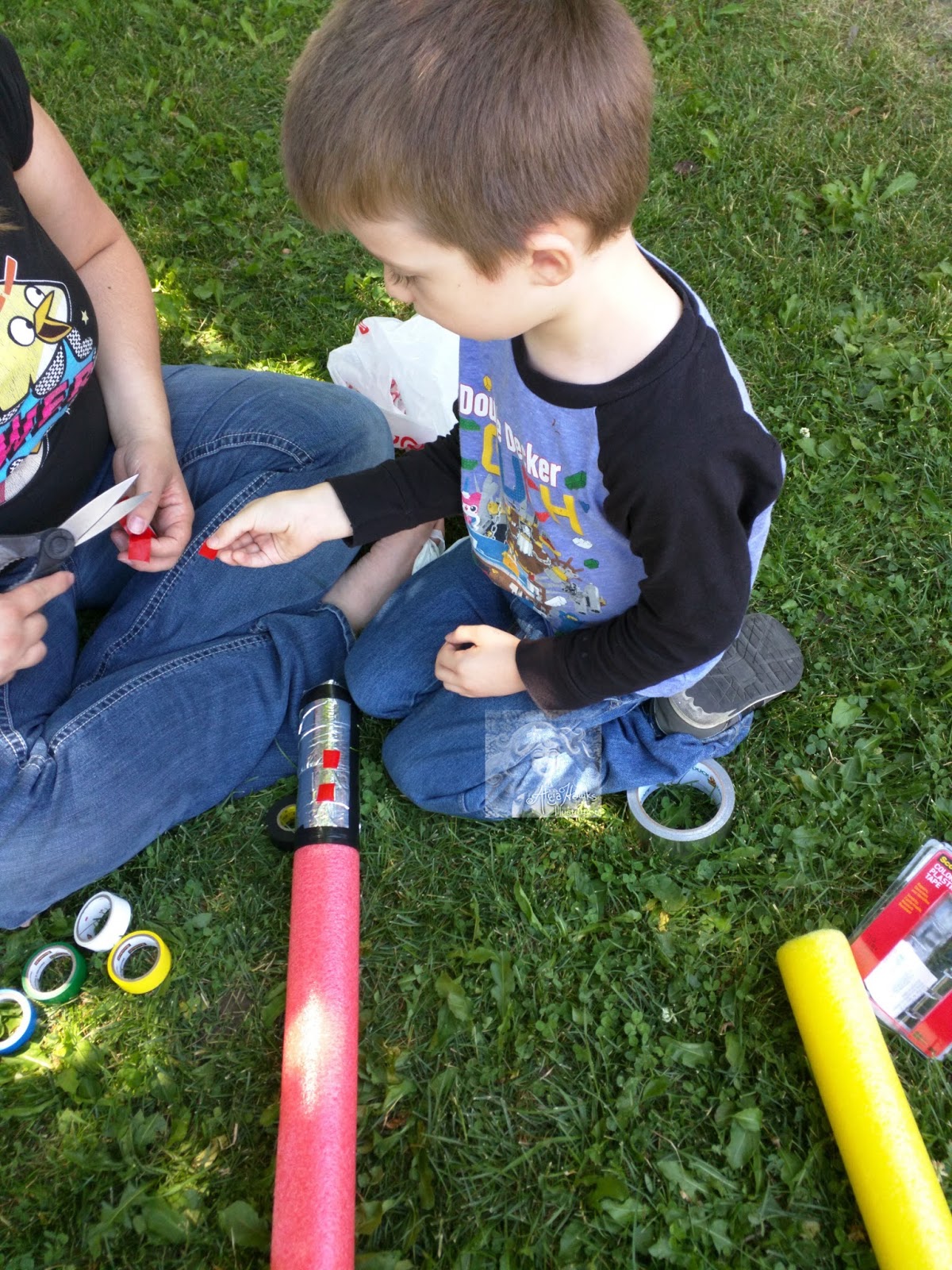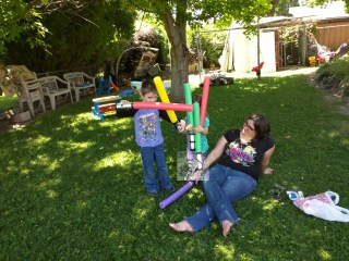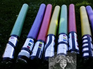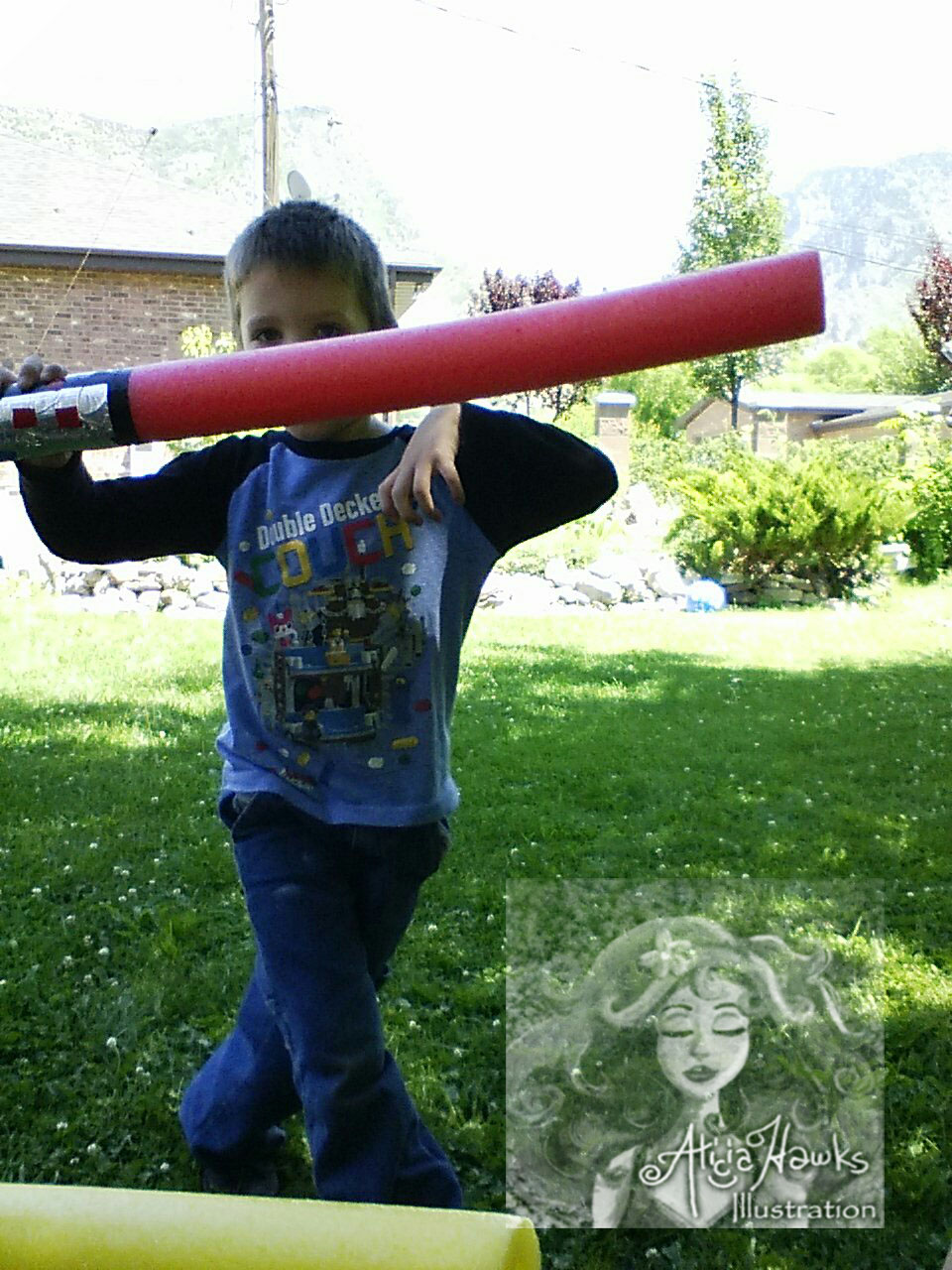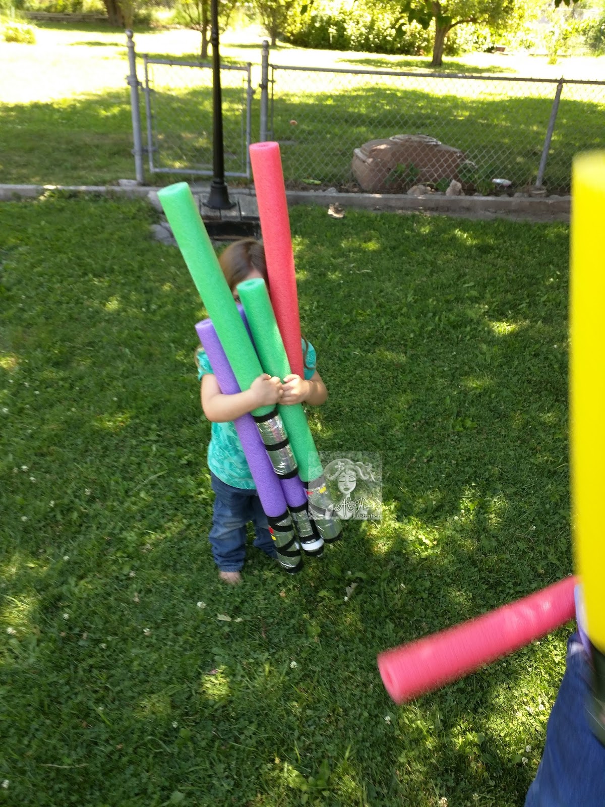So we looked up alternatives and found a short little post where someone suggested pool noodles. So we took that idea and ran with it. We made some pretty awesome little light sabers. They lasted for about 3 and a half years before they began to wear down. (pool noodles can only take so much of a beating).