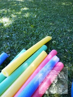 We got 4 pool noodles- so we spent a total of $18.63 pre-tax. So we spent about $2.50 per light saber if you include tax.