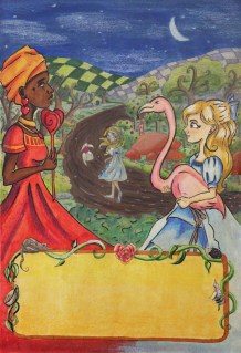 I would love to illustrate the whole book with a diverse cast- because it’d be fun. I found this stunning image of a woman from Africa when I was working on this and the queen of hearts was heavily based off of her. I couldn’t help thinking ‘why couldn’t she be a beautiful regal looking African woman?” So I went that direction instead of drawing the traditional crazy woman. I think I’d want to rewrite most of the story if I were to illustrate it though lol