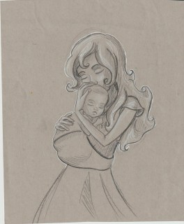 I did this drawing a number of years ago; before I had my third kid; before I even knew I WANTED another kid… I had this image of holding a little baby- it was so strong that I had to draw it. The baby in the drawing didn’t look like either of my other kids when they were babies, but a year or two later I met the baby in the picture. I very rarely have inspiration like that; so this is one of my favorite drawings.