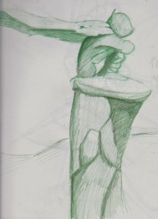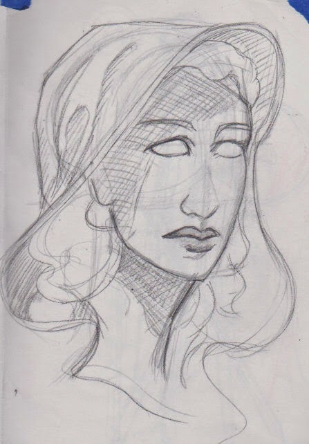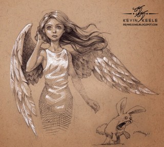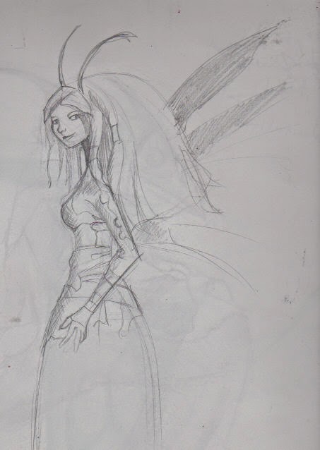 Today I tried something different- instead of just doing one sketch inspired by my artist I repeated what I did with Justin Gerard and actually sketched out copies of Larry’s paintings (with a time limit- since I do have finals in 2 weeks and many sketches and drawings to do between now and then) So I have posted my armature sketch next to the professional work. The last bit of art is my reference and then my own drawing based on his style.